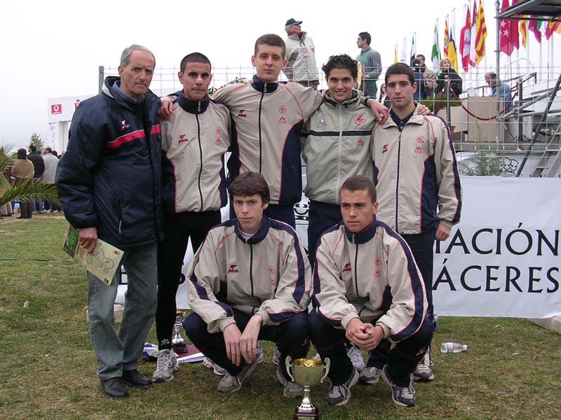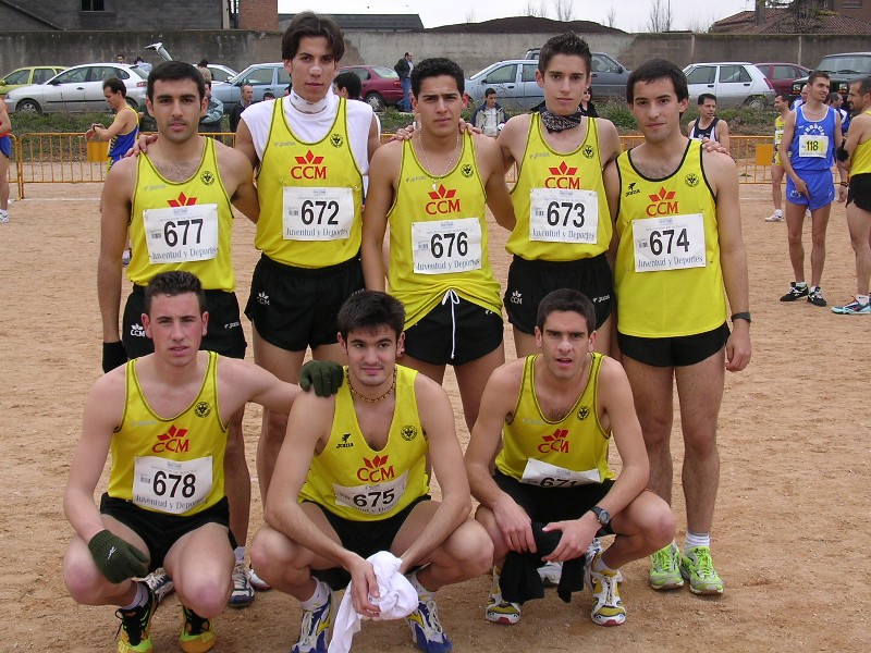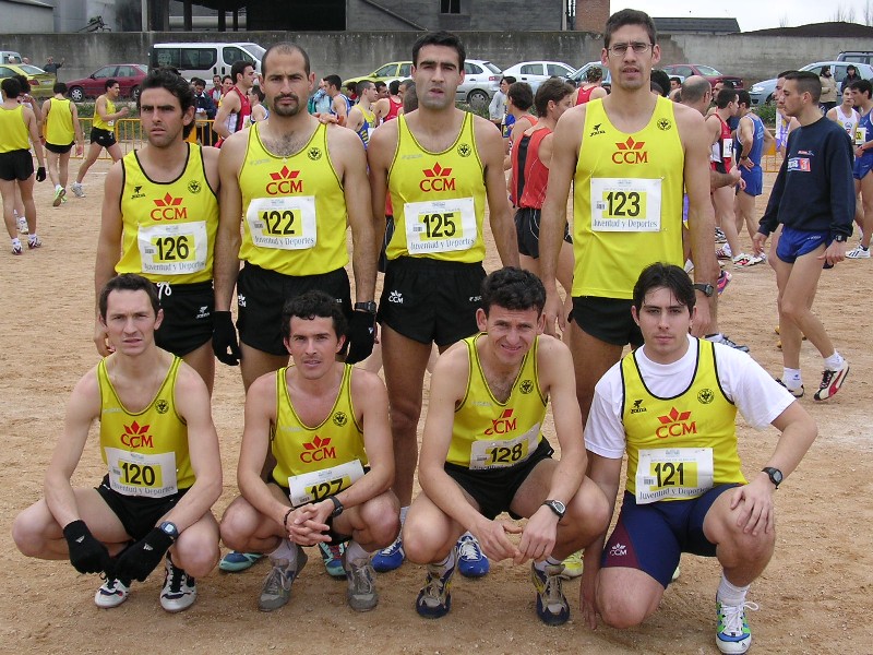 (foto del equipo júnior) Promesa: 1ª Marta Silvestre (CCM-CAT)(1ª Abs.), 2ª Esther del Fresno (CCM-Diputación C.Real)(Oro), 3ª Rus Cuevas (CA Albacete-CCM)(Plata), 4ª Cristina Heredia (CCM-Diputación C.Real)(Bronce), 5ª Charlene Cobos (CCM-CAT),...7ª Ana Belén Morales (CCM-CAT). EQUIPOS: 1º CCM-CA Toledo 9 ptos., 2º CCM-Diputación Ciudad Real 11 ptos. Sénior: 1ª Mª Jesús Trenado (CA Albacete-CCM), 2ª Mª José del Toro (CP La Roda)(Oro), 3ª Raquel Sierra (CD Canal Isabel II)(Plata), 4ª Alicia Fernández (CA Cuenca)(Bronce),...5ª Ester Bitrián (CCM-CAT),...12ª Palmira Amor (CCM-CAT)...22ª Mª Carmen Morales (CCM-CAT),...24ª Prado Serrano (CCM-CAT). EQUIPOS: 1º CA Cuenca 19 ptos., 2º CA Albacete-CCM 24 ptos., 3º CCM-CAT 49 ptos., 4º UDA Talavera 55 ptos. Cross corto: 1ª Paqui Crespo (Valdepeñas AC), 2ª Yanil González (U.Guadalajara), 3ª Ester Sánchez (U.Guadalajara). EQUIPOS: Desierto. HOMBRES: Cadete (F.C.): 1º Esteban Mena (CA Casas Colgadas), 2º Vicente García (CA Caudete Antonio Amorós), 3º David Donate (CP La Roda). Juvenil: 1º Pedro J. Moreno (CCM-Diputación C.Real), 2º Rodrigo Gil (U.Guadalajara), 3º Jorge Gregorio Lucerón (CCM-Diputación C.Real),...6º Rodrigo Cristina (CCM-CAT),...9º Daniel Santacruz (CCM-CAT),...11º José Luis Martínez (CCM-CAT),...14º Sergio Martín (CCM-CAT),...19º Rodrigo Guerrero (CCM-CAT), 20º Javier Aranda (CCM-CAT),...33º José Antonio Sánchez (CCM-CAT),...37º Juan Carlos Castell (CCM-CAT). EQUIPOS: 1º CCM-Diputación Ciudad Real 25 ptos., 2º CCM-CA Toledo 39 ptos., 3º Unión Guadalajara 57 ptos., 4º CA Casas Colgadas 62 ptos., 5º CA Manchego 77 ptos., 6º UDA Talavera 80 ptos., 7º CA Caudete Antonio Amorós 119 ptos. Júnior: 1º Alejandro Fernández (CCM-CAT), 2º Joussef Aakaou (U.Guadalajara)(Oro), 3º Juan José Gualo (CCM-Diputación C.Real)(Plata), 4º Francisco César Díaz (CCM-Diputación C.Real)(Bronce), 5º Víctor Eloy Álvarez (CCM-CAT),...8º Ángel Rus (CCM-CAT),...14º Javier Arnelas (CCM-CAT), 15º Antonio García (CCM-CAT), 16º Carlos Alberto González (CCM-CAT),...20º Javier Saldaña (CCM-CAT),...22º Juan Luis Pérez (CCM-CAT),...26º Gregorio Saldaña (CCM-CAT). EQUIPOS: 1º CCM-Diputación Ciudad Real 26 ptos, 2º CCM-CA Toledo 27 ptos., 3º CA Albacete-CCM 53 ptos., 4º UDA Talavera 54 ptos. Promesa: 1º José María Salom (CA Joma Sport)(Oro), 2º Alejandro Martínez (CA Joma Sport), 3º Marc Roig (CA Joma Sport), 4º Francisco José Bachiller (CCM-CAT),...6º Daniel de los Reyes (CCM-CAT)(Plata), 7º Santiago de la Torre (Bikila-Madrid)(Bronce),...14º Pedro Javier Vega (CCM-CAT), 15º Marcos Sánchez (CCM-CAT),...20º Carlos Hernández (CCM-CAT), 24º Pedro Villanueva (CCM-CAT), 25º José Luis López (CCM-CAT). EQUIPOS: 1º CA Joma Sport 11 ptos., 2º CCM-CA Toledo 31 ptos., 3º AA Villarrobledo 56 ptos., 4º CA Albacete-CCM 62 ptos. Sénior: 1º David Solis (CA Joma Sport)(Oro), 2º Pedro Antonio Santos (CA Joma Sport)(Plata), 3º Javier Rodríguez (CA Joma Sport), 4º Pablo López (CA Joma Sport)(Bronce),...8º Jesús Alvarado (CCM-CAT),...11º César Nombela (CCM-CAT),...16º Jesús Ignacio Sánchez (CCM-CAT),...30º Fernando Alvarado (CCM-CAT), 31º Francisco Javier Andrade (CCM-CAT),...38º Jesús Vertiz (CCM-CAT),...47º Víctor Ballesteros (CCM-CAT). EQUIPOS: 1º CA Joma Sport 10 ptos., 2º CCM-Diputación de Ciudad Real 48 ptos., 3º CA Albacete-CCM 51 ptos., 4º AA Villarrobledo 61 ptos., 5º CCM-CA Toledo 63 ptos., 6º Bikila-Toledo 67 ptos., 7º UDA Talavera 99 ptos. Cross corto: 1º Juan Cruz (U.Guadalajara), 2º Álvaro Trujillo (CCM-Diputación C.Real), 3º Pedro José González (CA San Pablo). EQUIPOS: 1º CCM-Diputación C.Real 33 ptos., 2º CA San Pablo 38 ptos., 3º Unión Guadalajara 39 ptos., 4º AA Villarrobledo 50 ptos., 5º Bikila-Toledo 75 ptos., 6º CA Albacete-CCM 85 ptos. MUJERES: Infantil (2km.): 1ª Mónica Moratalla (CA Criptana) 11:35, 2ª María Larios (CA Albacete-CCM) 12:48, 3ª María José Lorenzo (CA Albacete-CCM) 13:44. Cadete (5 km.): 1ª Alicia Díaz (CA Caudete A. Amorós) 30:42, 2ª Lourdes Leñero (CA Criptana) 30:52, 3ª Mercedes López (CA Criptana) 31:45. Absoluta: 1ª Amadora Ramos (CCM-CAT) 54:51, 2ª Elena Pavón (CCM-CAT)(Juvenil) 58:02, 3ª María José López (CCM-Diputación C.Real) 59:06. HOMBRES: Infantil (2 km.): 1º Tomás Molina Prado (CA Criptana) 11:14, 2º Luis Cambronero (CA Albacete-CCM) 11:27, 3º David Jiménez (CP La Roda) 11:47. Cadete (5 km.): 1º Antonio J. Rubio (Valdepeñas AC) 28:11, 2º Jaime Cañas (CA Criptana) 29:08, 3º David Méndez (PROACIR) 29:35 Absoluta (10 km.): 1º José Luis Duce (AD Marathón) 46:46; 2º Francisco Javier Redondo (CCM-CAT) 49:26, 3º David Eduardo Sevilla (Valdepeñas AC) 50:02. Descalificado: David Molero de Ávila. (foto de los marchadores del CCM-CAT) Reportaje fotográfico: (A.M) 7 2ª Prueba Campeonato Provincial Deporte en Edad Escolar Campo a través (Los Yébenes/Toledo) Resultados parciales: MUJERES: Benjamín: 1ª Yariza Jiménez (UDAT), 2ª Laura Santos (Infantes), 3º Ana Torres (EDM-CA Manchego),... 7ª Ainhoa Otero (CCM-CAT). Alevín: 1ª Sara Sánchez (San Ildefonso), 2ª Alicia Domínguez (San Ildefonso), 3ª Cristina Rosique (CCM-CAT), 4ª María Varo (CCM-CAT), ...7ª Belén Rodríguez (CCM-CAT), ...14ª Ana Moreno (CCM-CAT),...23ª María Pilar Alba (CCM-CAT),...25º Elena Echanove (CCM-CAT). Infantil: 1ª Sherezade Jiménez (UDAT), 2ª Elena Verduguez (EDM-CA Manchego), 3ª Maigualida Ojeda (Infantes), 4ª Sofía Martín (CCM-CAT), ...13ª María Moreno (CCM-CAT). Juventud: 1ª Sonia Labrado (CCM-CAT), 2ª Patricia Prieto (UDAT), 3ª Marta Blanco (UDAT), 4ª Verónica Rey (CCM-CAT), 5ª Sanae Matraqui (CCM-CAT). HOMBRES: Benjamín: 1º Ángel Gómez Hidalgo (PDM Torrijos), 2º Miguel Ángel Camacho (EDM-CA Manchego), 3º Ángel D. Avilés (EDM-CA Manchego), 4º Lucas Bua (CCM-CAT),...12º Manuel Lanza (CCM-CAT). Alevín: 1º Mohamed Chetouani (Ay